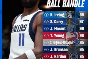 体育资讯8月13日讯 今天,NBA 2K官方公布了《NBA 2K26》的控球前10,具体为: