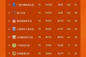 2025女甲联赛第15轮战报、积分榜、射手榜