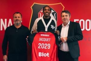 罗马诺表示:“阿森纳已就法国新星中卫雅奎特展开初步接触,枪手对这位19岁后卫青睐有加,球员近期刚与雷恩续约至2029年6月。”